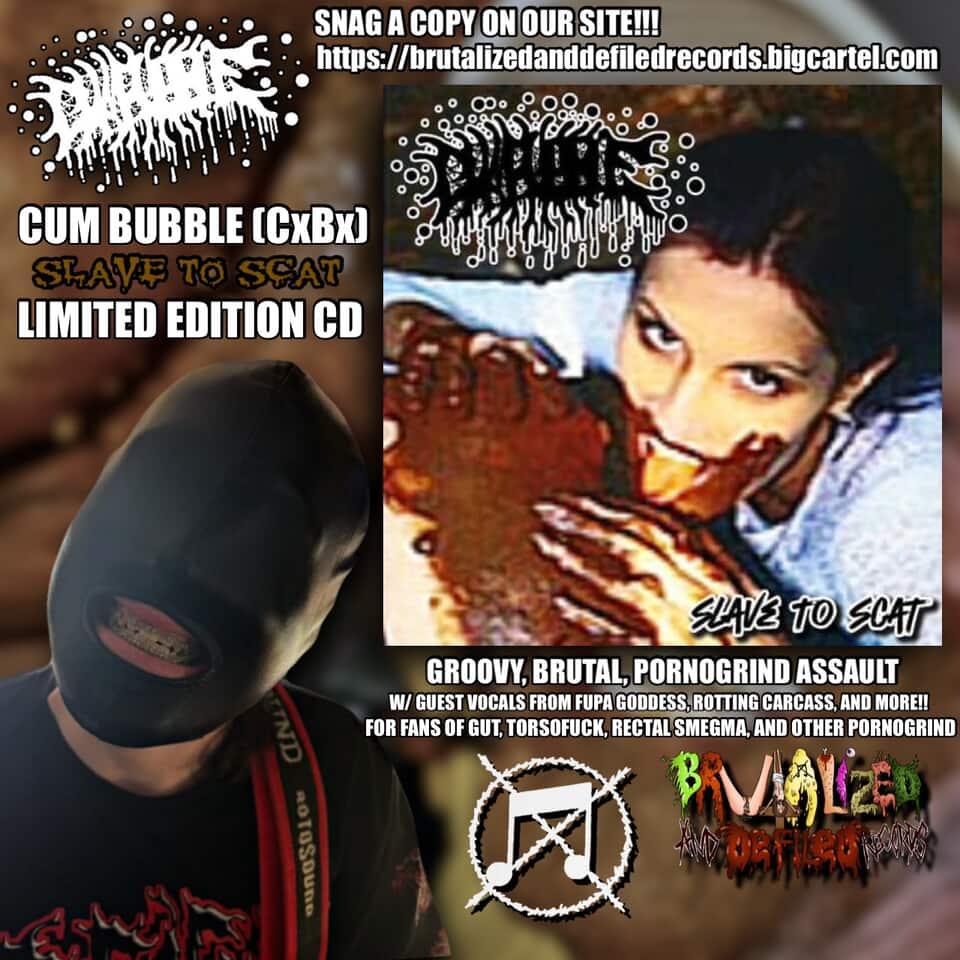 FINALLY, THE 4TH RELEASE OF BRUTALIZED AND DEFILED RECORDS IS HERE!!! Slave To Scat by Cum Bubble!!!! DISGUSTING AND SICKENING PORNOGRIND!!!! Pre-Order a copy now! YOU DON'T WANNA MISS OUT!!!!