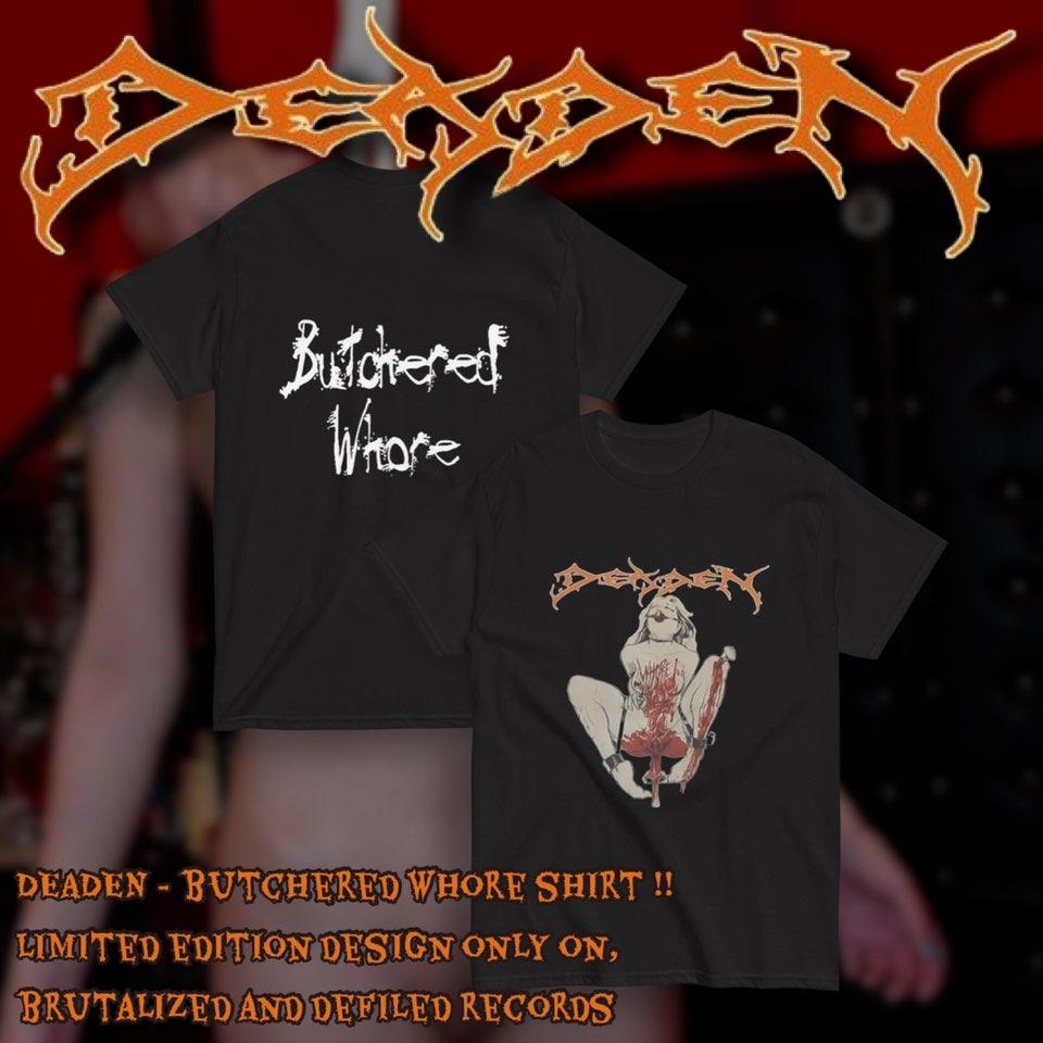 The first of many bootlegs to come: DEADEN, BUTCHERED WHORE!!!!!!!!! One of the sickest shirts out there by one of the sickest and most BRUTAL bands ever!!! Order now before they're gone! VERY LIMITED!!!!!