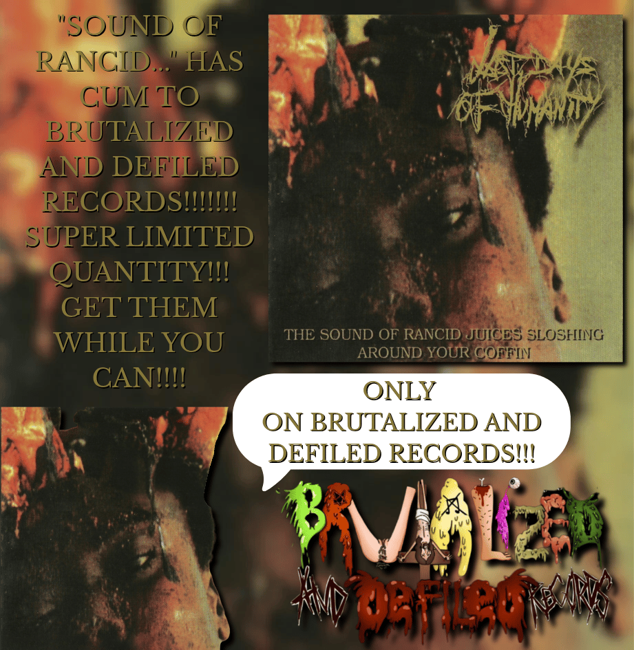 WE GOT LAST DAYS OF HUMANITY CD'S CUMMING IN HOT!!! One of THE SICKEST bands to ever exist, get their legendary debut album NOW!!!! PRE-ORDER WHILE YOU STILL CAN!!! SUPER LIMITED QUANTITY!!!