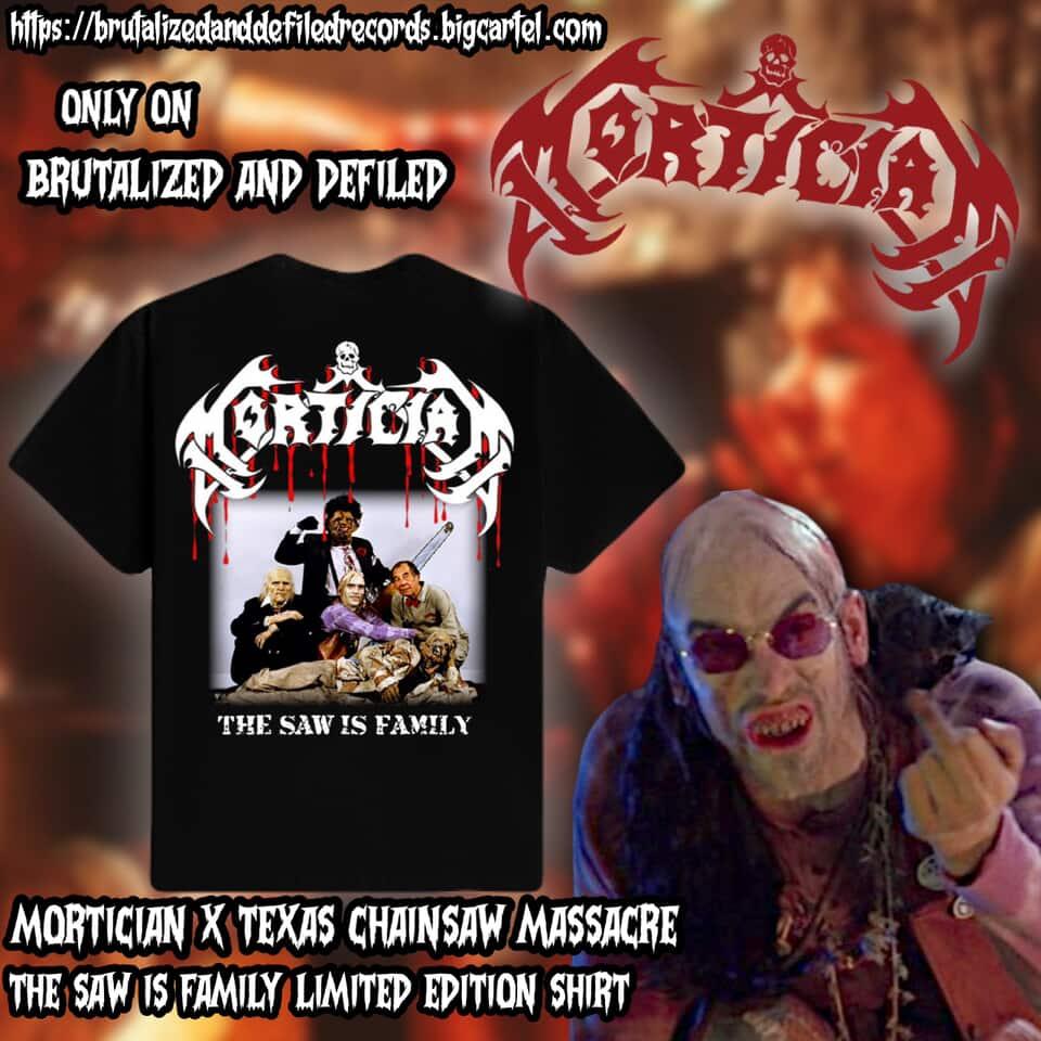 Another long awaited design! MORTICIAN, "THE SAW IS FAMILY". HACK UP FUCKERS IN THE PIT WITH THIS SICK ASS DESIGN!!! SUPER LIMITED QUANTITY, WONT LAST LONG!!!!!