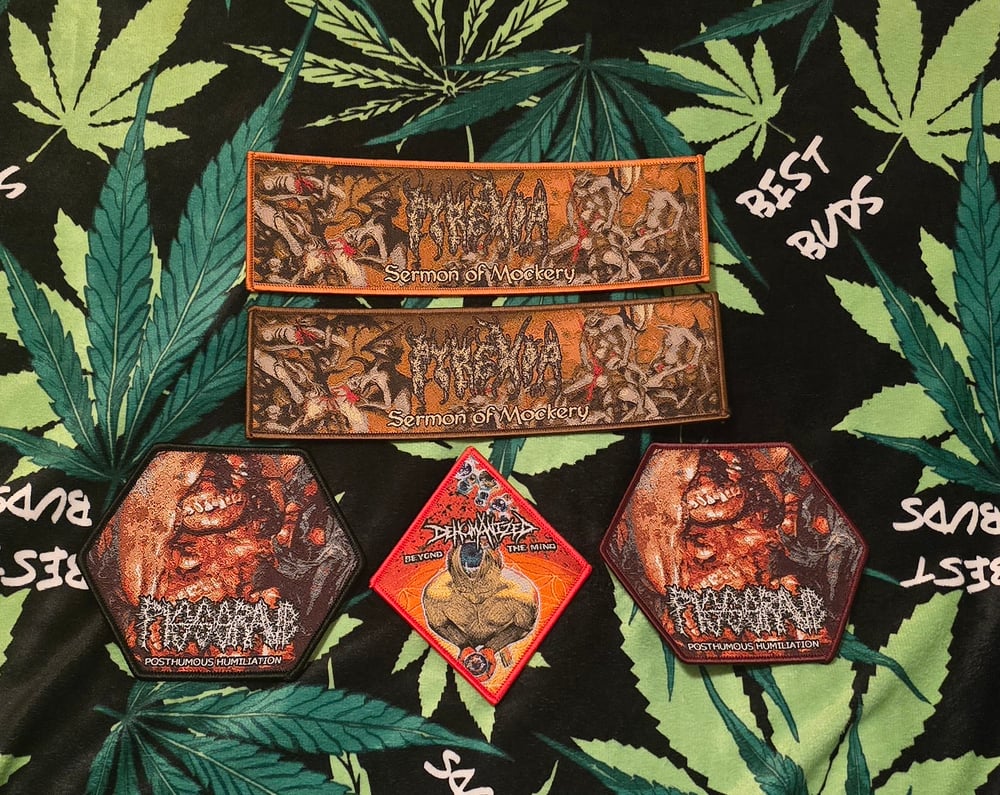 WE THESE SICK PISSGRAVE, PYREXIA, AND DEHUMANIZED PATCHES IN!!!! SEW ON YOUR VEST, YOUR ASSHOLE, YOUR TITS, WHATEVER, BUT GET THEM WHILE THEY LAST!!!!
