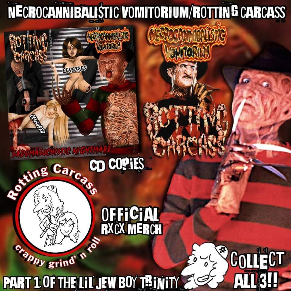 PART ONE OF THE JEW BOY TRINITY!!!!!: ROTTING CARCASS/NECROCANNIBALISTIC VOMITORIUM CD's HAVE FINALLY HIT BDR!!!! Pure GRINDING MADNESS throughout!!!! SUPER LIMITED QUANTITY OF THESE AVAILABLE, SO GET EM NOW!!!! Or the Rabbi Seth WILL drive up your home, student loans, and car payment interests THROUGH THE ROOF!!!!!!👀 ORDER NOW!!!!!!